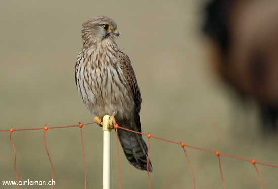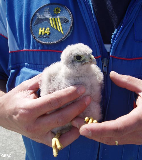 fièrement une jeune Crécerelle née dans un hangar de la place.