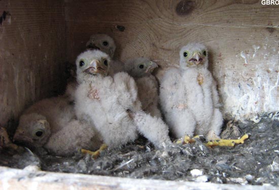 du nichoir : les faucons ne construisent pas de nid ; l’adulte se contente de
