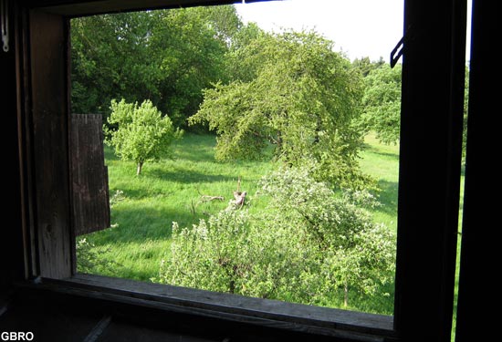 Disposition du nichoir, à côté de la fenêtre d’un hangar