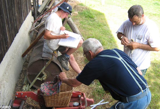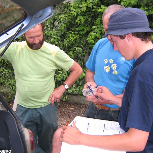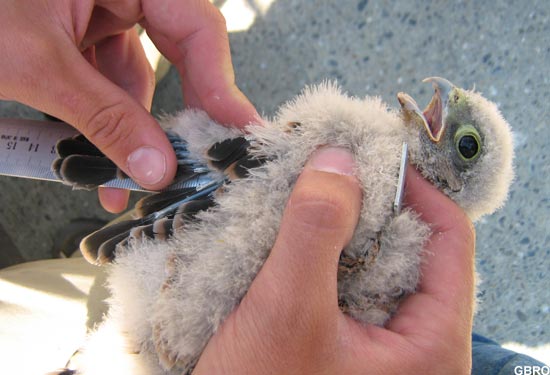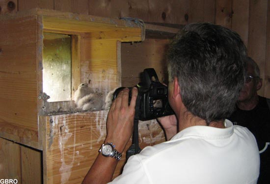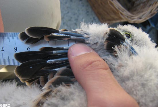 Les jeunes sont amenés au sol afin d’être mesurés et bagués.