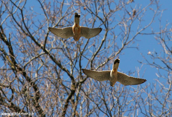 Deux mâles convoitant le même site dans une falaise de molasse tournoient